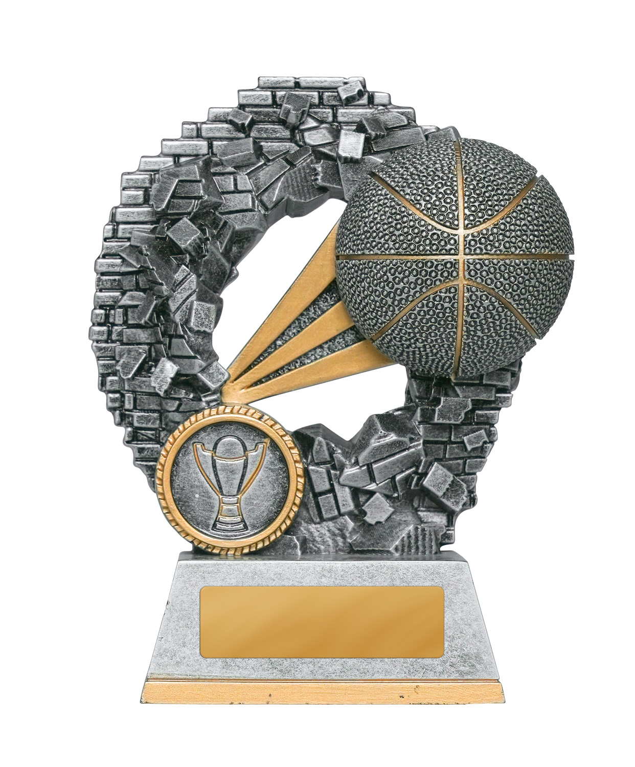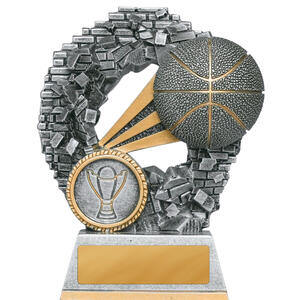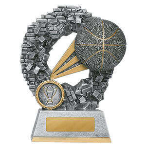 Celebrate achievement on the court with this elegant Mykanos Series basketball trophy. It features a textured basketball motif and a refined trophy emblem a top a circular base. This polished sports award trophy offers a fitting tribute for basketball awards, MVP recognition, and commemorating standout performances.