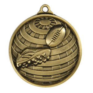 Celebrate sporting achievement with this expertly crafted medal from the aussie rules medals collection. Available in gold, silver, and bronze finishes, the circular medal is made from metal and showcases an embossed football and cleat design set against a textured backdrop.