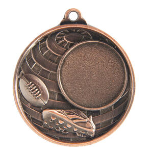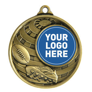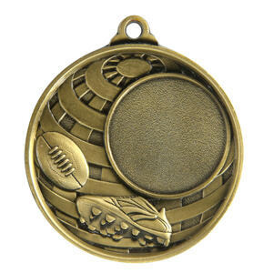 Designed for aussie rules medals presentations, this elegant circular medal features a striking depiction of a football and cleats, encapsulating the spirit of AFL and football achievement. Crafted from metal and available in gold, silver, gold and bronze finishes, it includes a practical loop for ribbon attachment.