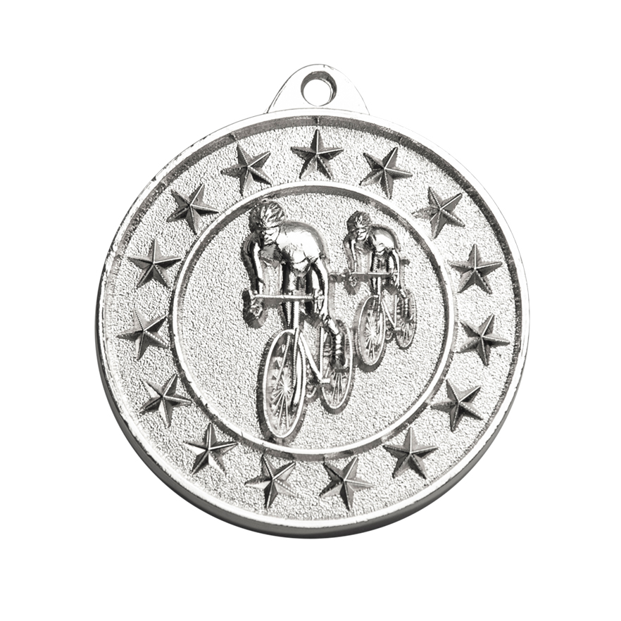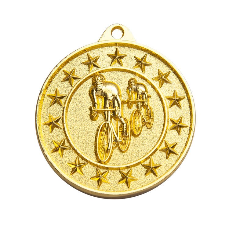 Crafted from durable metal with a refined circular form, this medal celebrates cycling achievement with an embossed design featuring dynamic cyclists and shooting stars. Available in gold, silver, or bronze, it offers a memorable way to recognise excellence at cycling events. These cycling medals combine elegance and quality, making them a trusted choice for sporting recognition.