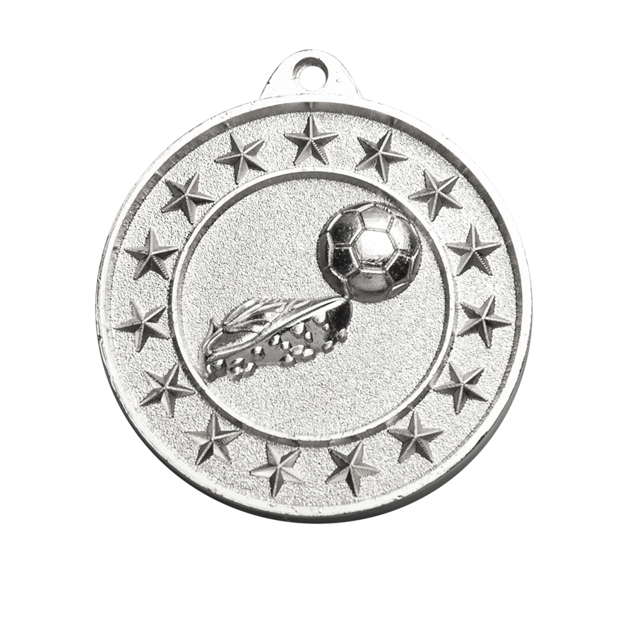 Celebrate football achievement with a durable, 50mm medal, crafted in metal and available in gold, silver, and bronze finishes. The striking high relief 3D design features a football and boot combination, surrounded by star accents that capture the spirit of the game. Ideal for sporting events, this medal offers a customisable engraving plate for professional, memorable recognition.