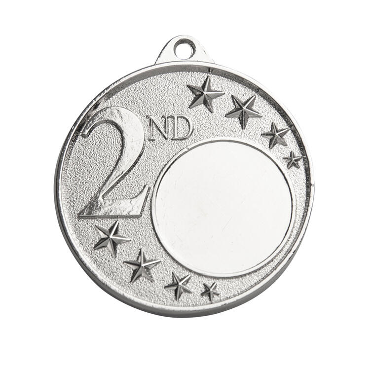 Celebrate achievement with this elegant 2nd place medal, crafted from metal for both durability and professional presentation. Its medal, measuring approximately 50mm in diameter, is detailed with striking star decorations and a clear '2nd' . A top loop ensures seamless ribbon attachment, making it a reliable choice for general sports recognition.