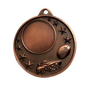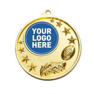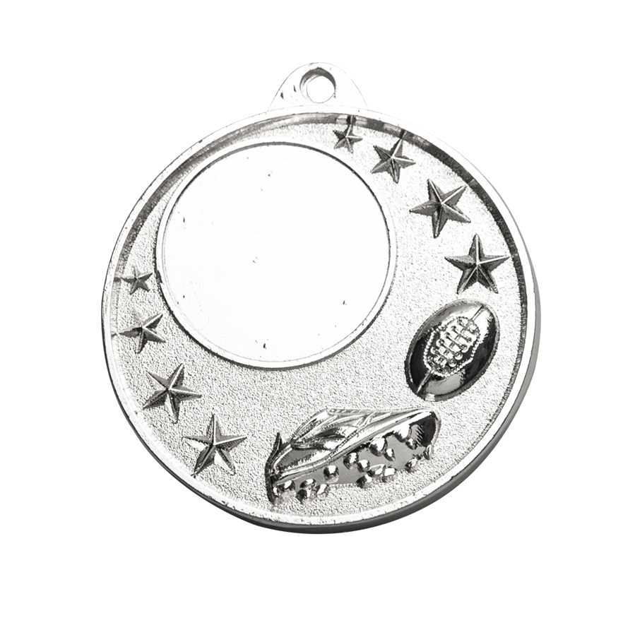 Celebrate sporting achievement with this aussie rules medal, expertly crafted from metal and available in a choice of gold, silver or bronze finishes. The circular design features embossed football cleat motifs, framed by a constellation of stars. A central blank area on the back offers space for personalisation, making this medal a trusted choice for AFL recognition.