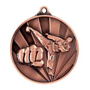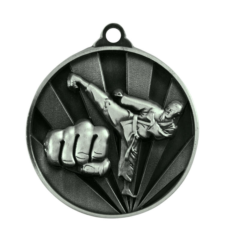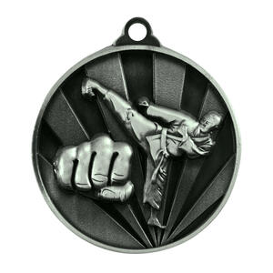 Crafted from metal, this 50mm medal offers a professional finish in your choice of silver, gold, or bronze. The detailed raised design showcases a martial artist in action with a distinct fist symbol, making it ideal for recognising achievement in martial arts disciplines. A classic circular shape with a secure loop allows for an easy ribbon attachment.