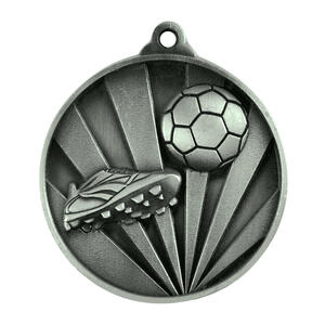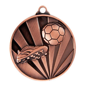This soccer medal offers a refined tribute to football achievement, expertly crafted from metal and available in gold, silver and bronze finishes. The details of a soccer ball and cleat highlights the spirit of the game, while the classic circular form with loop ensures versatile presentation.