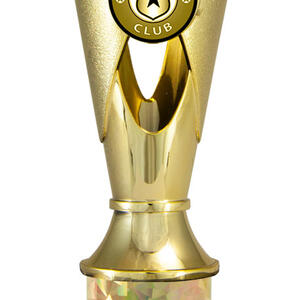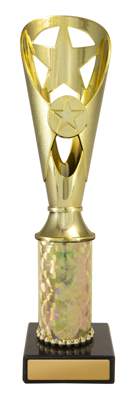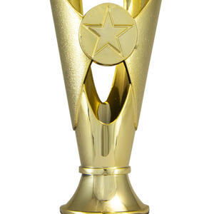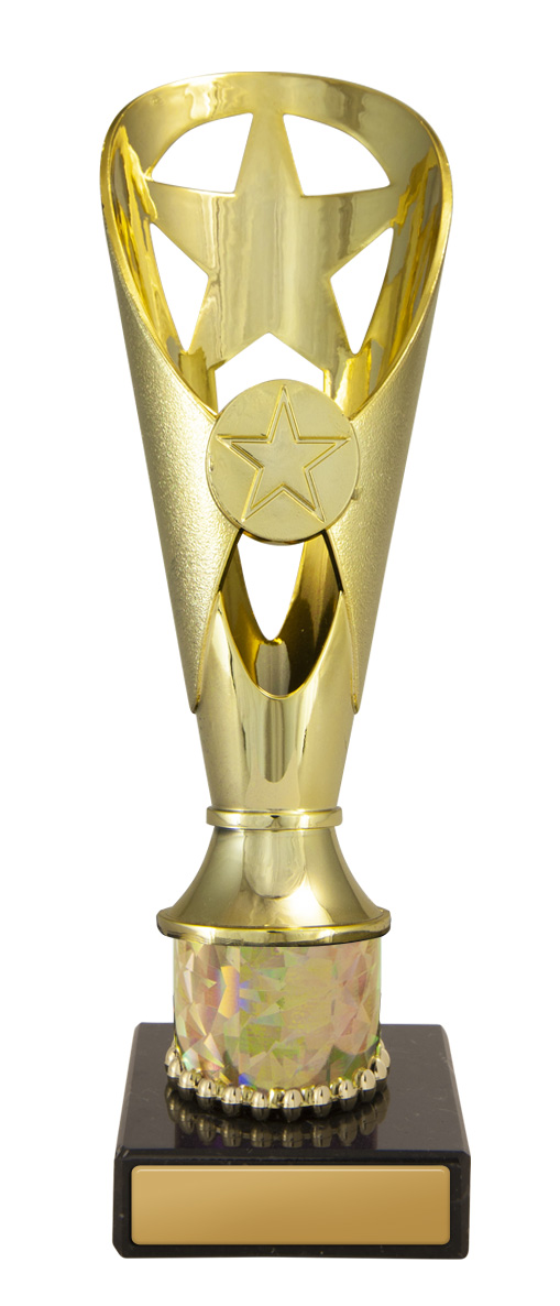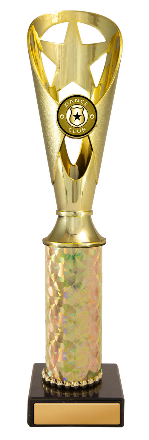 This budget trophy cup offers a striking solution for recognising achievement. Finished in gold with black and iridescent accents, the design features a star shaped cutout and a base, perfectly suited for dance competitions. Available in five sizes, ideal for clubs and event organisers seeking memorable and professional awards.