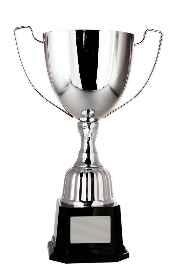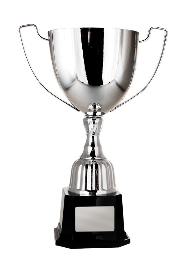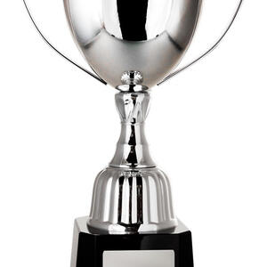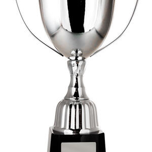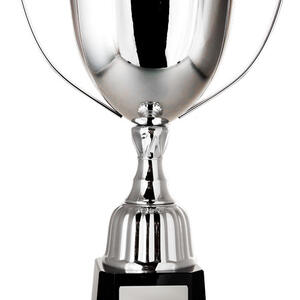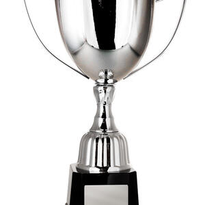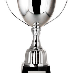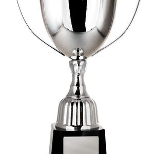 This metal trophy cup features a silver finish, elegantly accented with classic handles and mounted on a black base. Its sleek design and substantial presence make it a versatile choice for a range of sporting achievements. The Victory Cup Silver offers a blank plaque ready for personalised recognition in any setting.