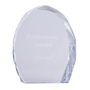Glass trophies typically have a very slight green tinge, which can subtly affect the appearance of colour printing. In contrast, crystal trophies are completely clear.