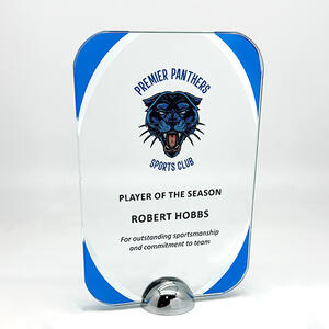 We use Superior Sandblast engraving or high-resolution full-colour printing to achieve striking results on our glass awards and trophies.