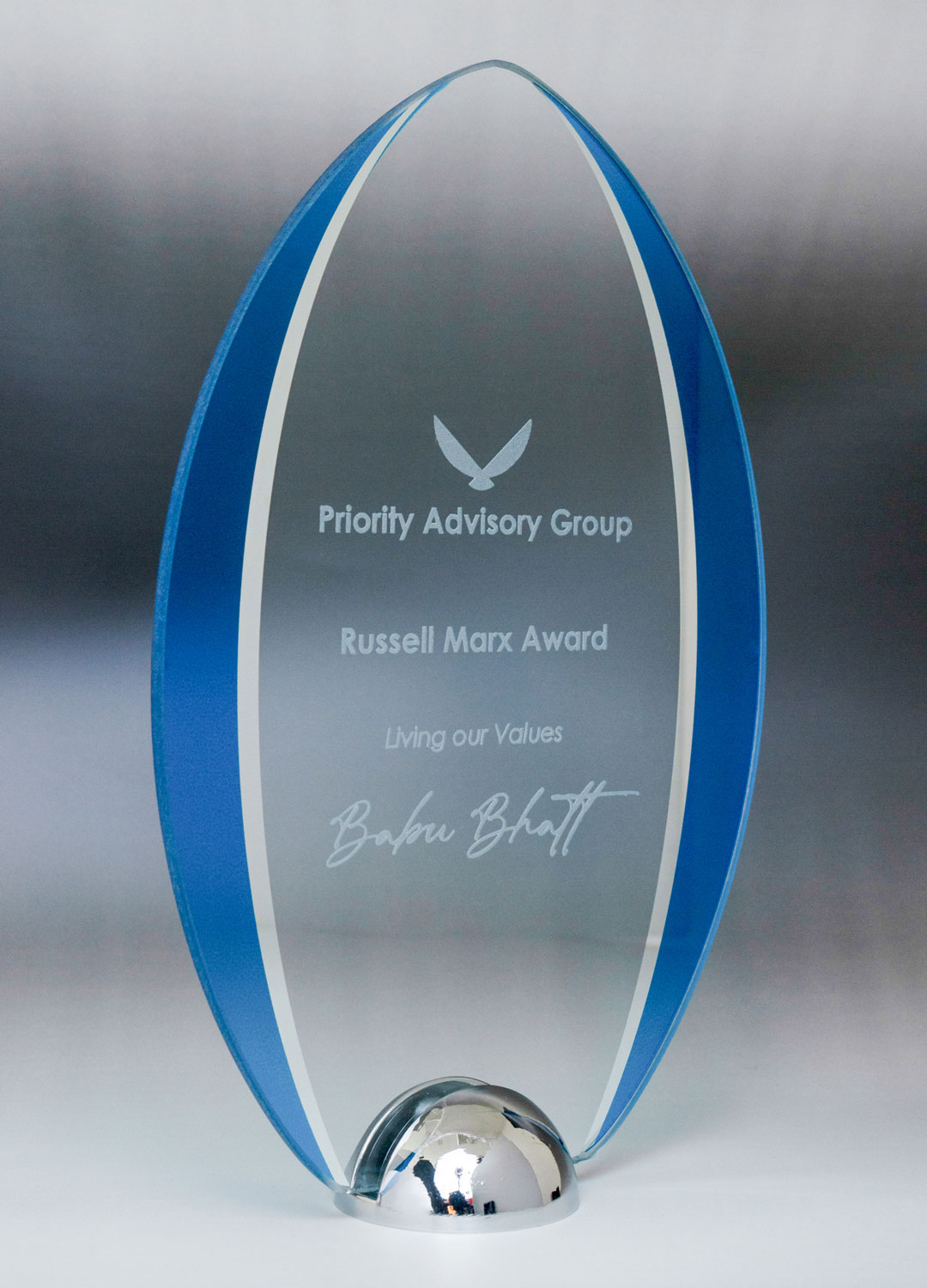 Premier Awards is the leading choice for glass trophies, combining expert craftsmanship, precision engraving, and modern design. Our standout sandblast engraving process creates a crisp, high-contrast finish far superior to inferior laser engraving, ensuring a high quality, professional look.