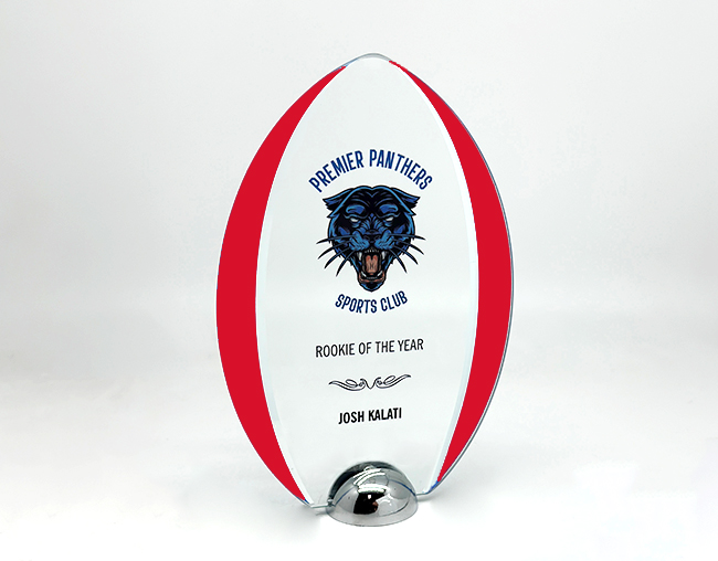 Glass trophies typically have a very slight green tinge, which can subtly affect the appearance of colour printing. In contrast, crystal trophies are completely clear.