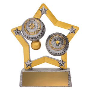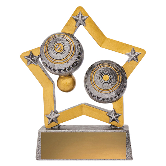 Eye catching star-shaped lawn bowls trophy with raised bowls and jack detail. Finished in silver and gold, itÂ’s perfect for player of the match awards or participation recognition.