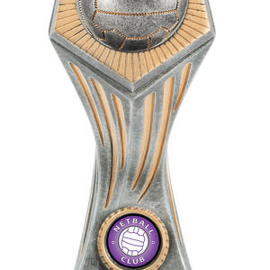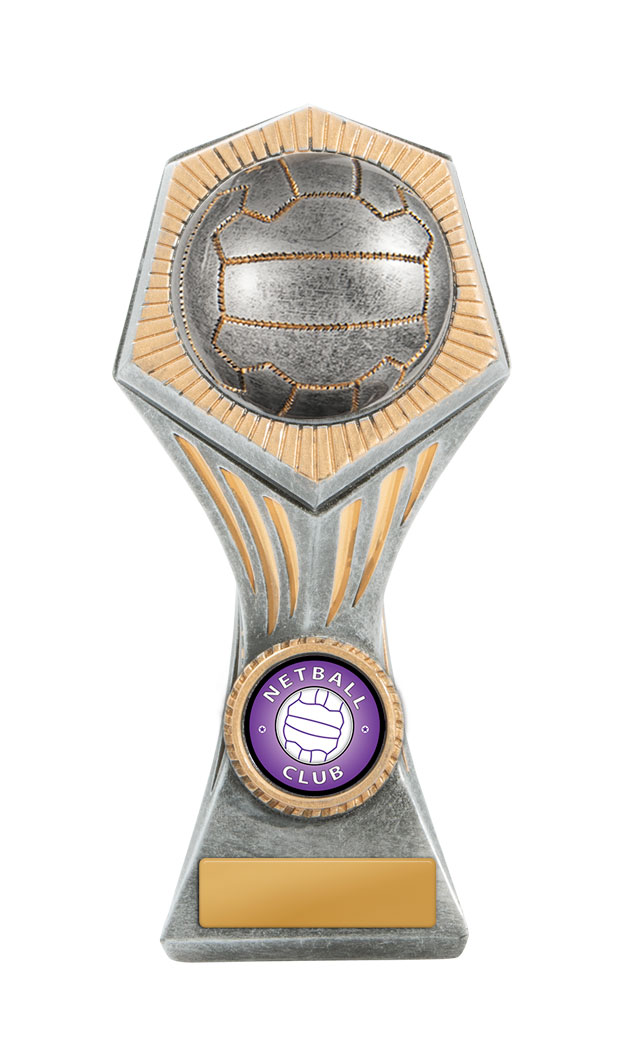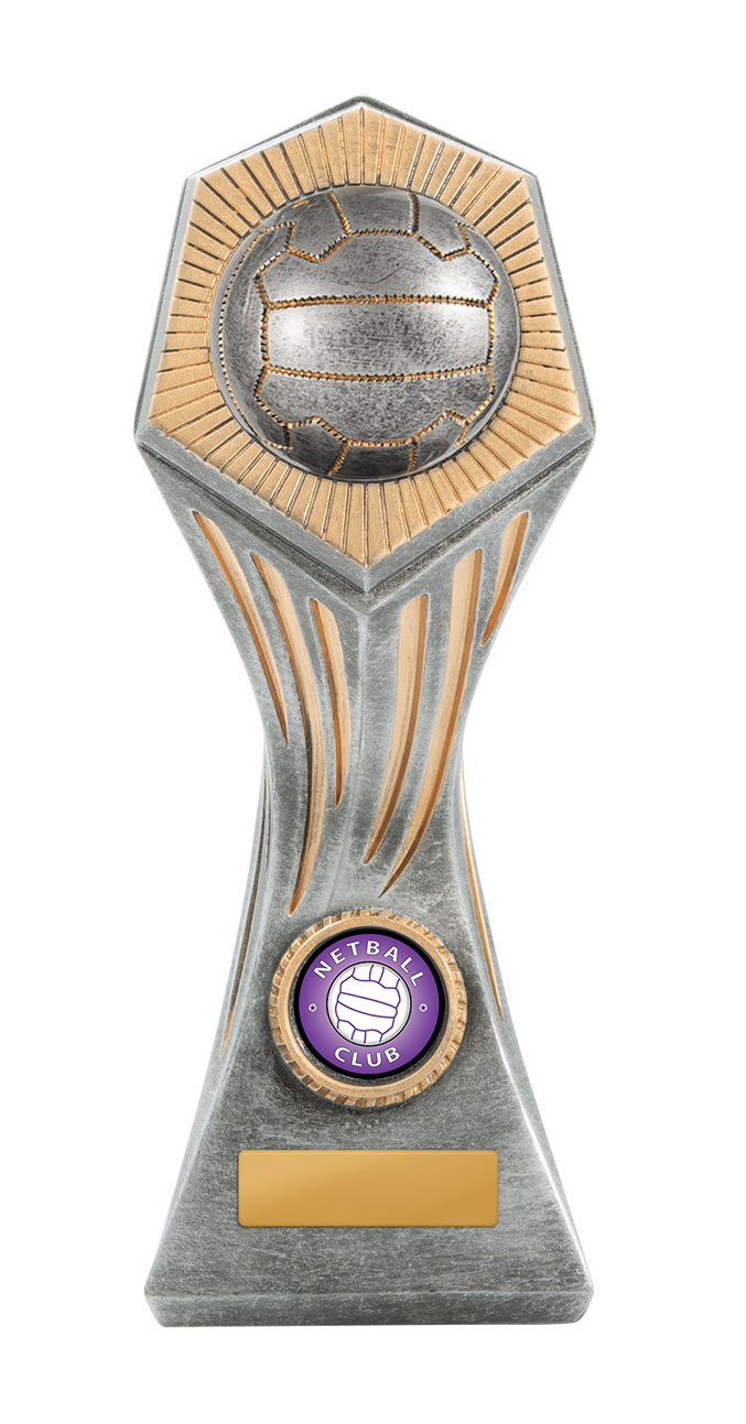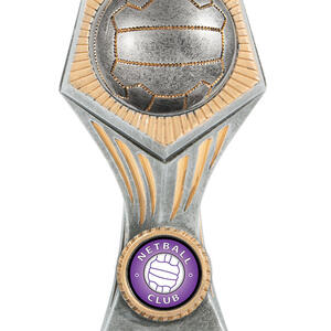 Crafted for standout recognition, this netball trophy features a striking hexagonal top and a refined tapered base. The resin construction ensures both visual appeal and lasting durability. Finished in silver and gold tones, this award is ideal for netball awards, offering a memorable and customisable way to celebrate achievement.