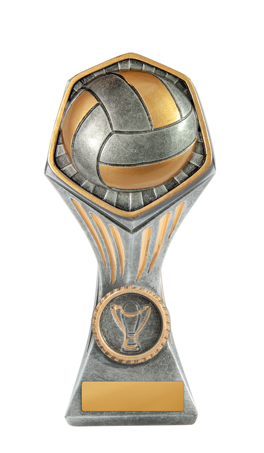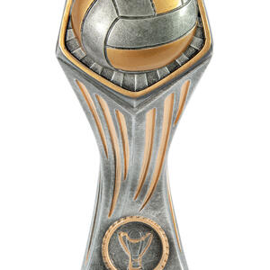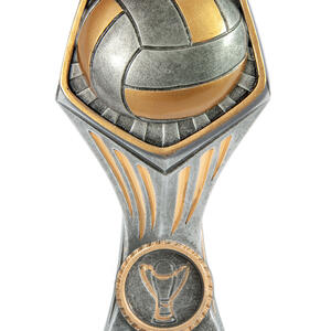 This volleyball trophy from the Gladiator Series stands out with its refined silver and gold resin construction and distinctive hexagonal top. Featuring a raised volleyball design and a trophy emblem at the base, it offers a professional and memorable tribute to achievement. At 150mm tall, it is crafted for lasting recognition in any volleyball event or tournament.