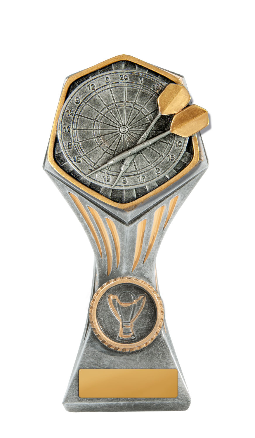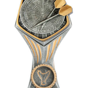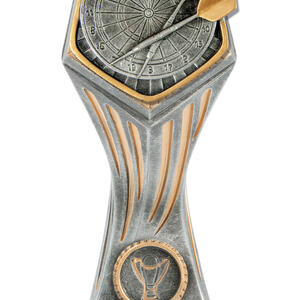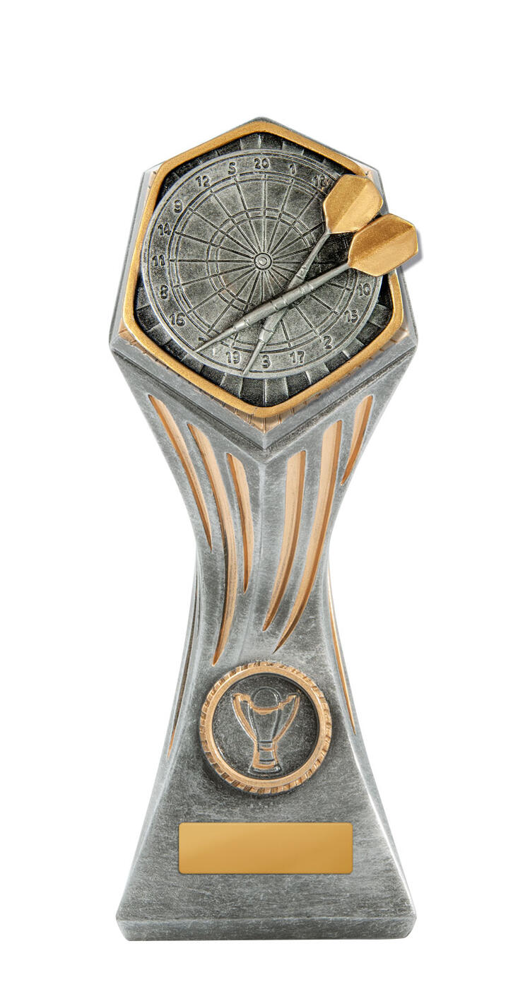 Celebrate precision and achievement with this darts trophy from the Gladiator Series. Crafted in resin with a refined antique silver finish, it features a striking hexagonal top, star inspired detailing, and a vibrant colour insert that brings the dartboard and two darts to life. The compact design includes space for personalisation on the base, making it an elegant and durable choice for recognising excellence in darts.