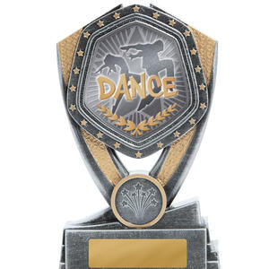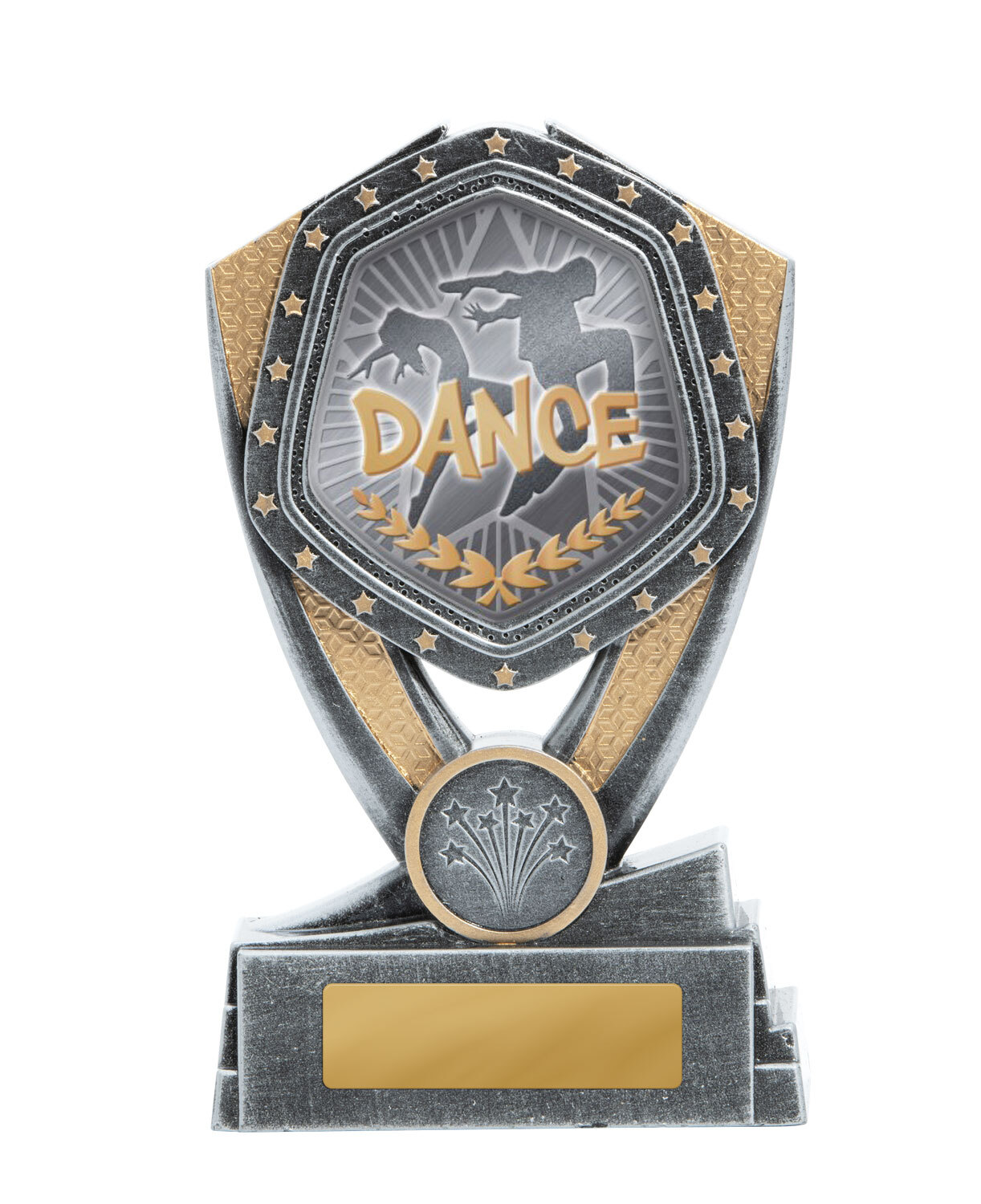 Crafted for distinction in dance achievement, this dance trophy cup features three interlocking silver stars rising from an elegant, base. The abstract shape and black accents offer a contemporary edge, while the "Dance Club" badge signals its celebratory purpose. Combining impressive weight and refined detail, it offers a professional recognition piece for dance competitions and club events.