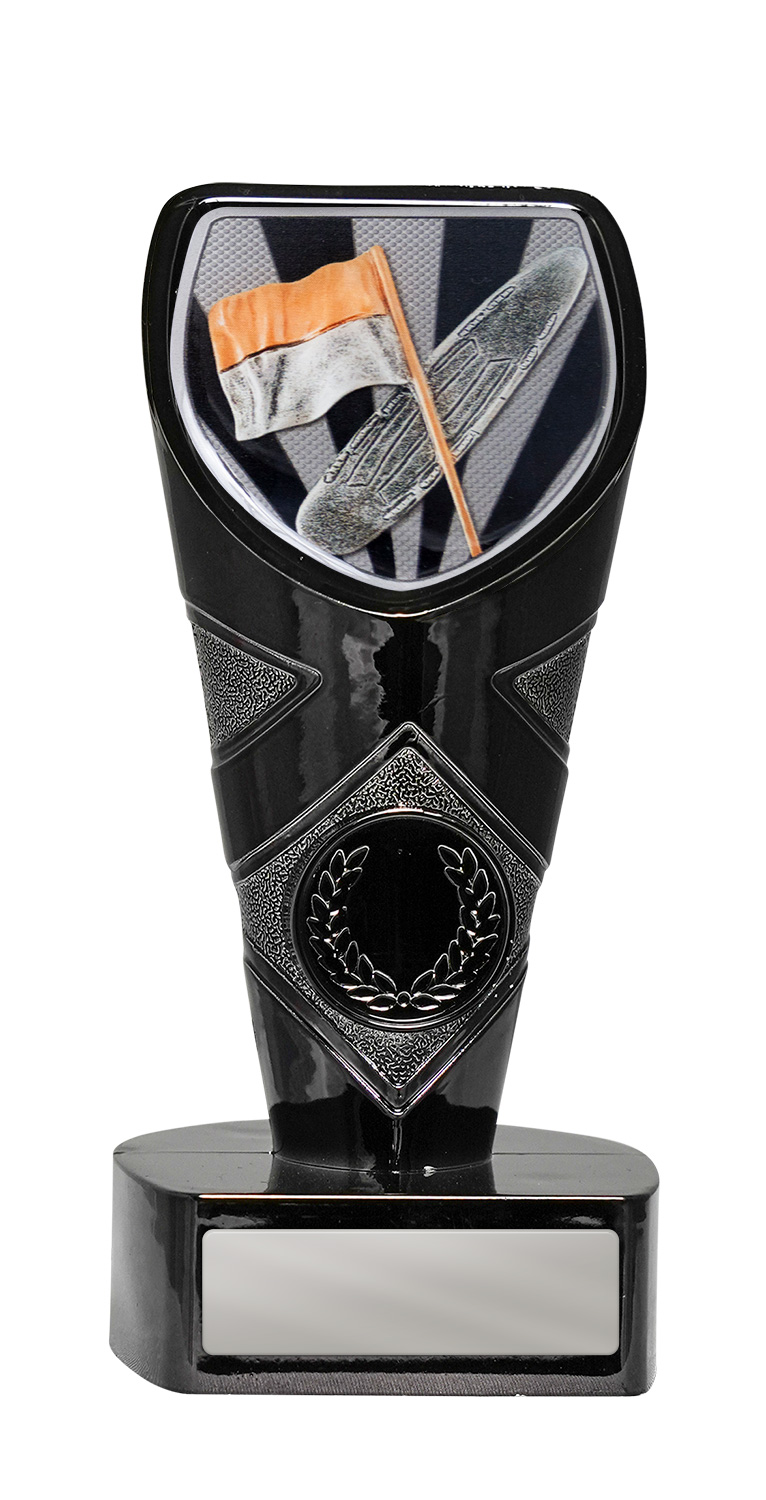 Combining precision details with a striking colour palette, this surf life saving trophy is crafted from resin in black and silver tones. The shield shaped top presents a dartboard and darts motif, complemented by a laurel wreath emblem on the base. Designed to celebrate darts achievement, this trophy is a reliable and quality choice for club or community recognition.