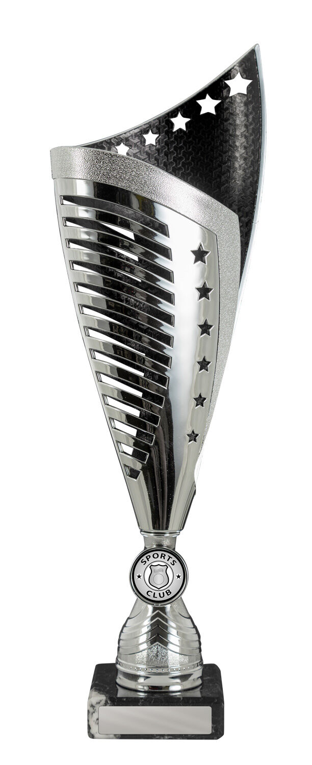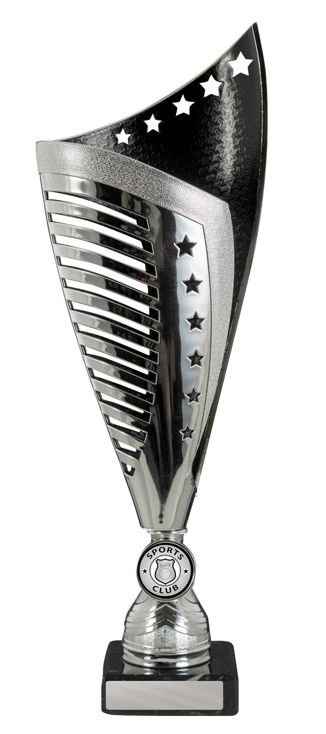 This classically styled trophy from the Whistler Series features a 25mm centre, perfect for highlighting club emblems or event logos. The design delivers a reliable and professional recognition solution for sporting events, schools, or community achievements. As part of the trusted Budget Cups range, it offers a balanced aesthetic suited to many award presentations.