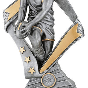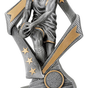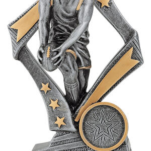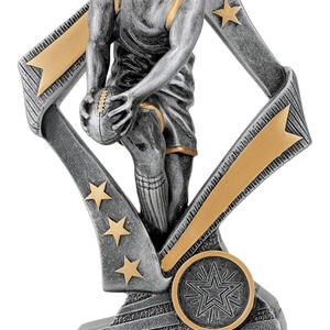 Celebrate sporting excellence with this premium afl trophy, crafted to showcase achievement in Aussie Rules Football. Featuring a male player in a dynamic pose, the design is highlighted by striking stars and arrows in elegant antique silver and gold tones. Its durable metallic construction make it a distinguished choice for recognising memorable moments on the field.