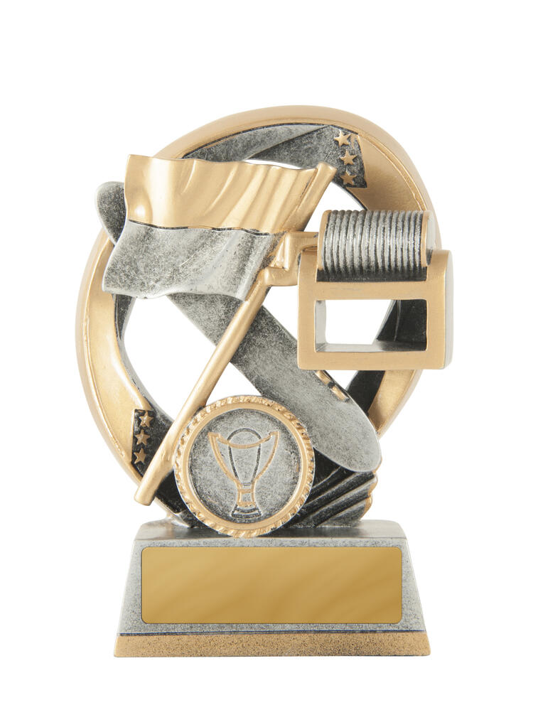Crafted to celebrate surf life saving achievement, this trophy combines gold and silver with a durable base for a professional presentation. Decorative features include a surf life saving cap and flags. Perfect for surf lifesaving trophies, it offers a custom engraved plate, ensuring memorable recognition at any competition.