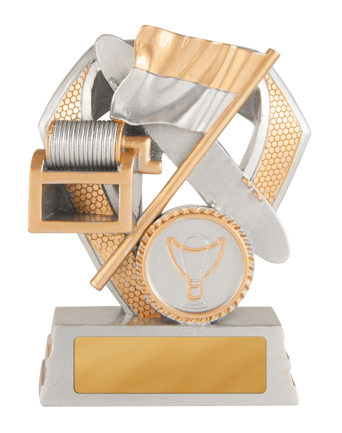 Celebrate achievement in surf lifesaving with this elegant surf lifesaving trophy, crafted to recognise dedication and teamwork. Featuring a bold shield design, flag, and trophy emblem, its gold and silver finish stands out on a sturdy base.