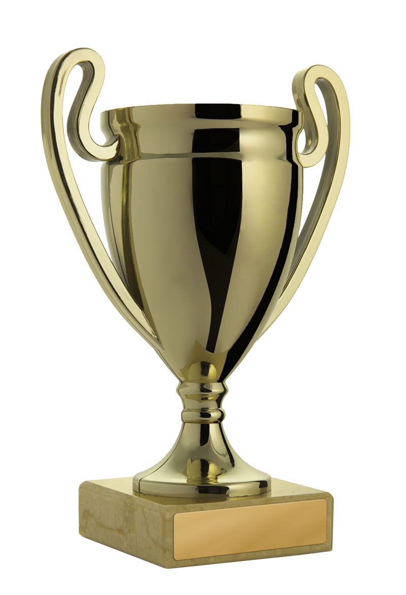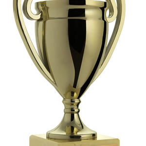 This gold cup trophy from the budget cups collection offers a classic and celebratory design for recognising achievement in any sporting context. Crafted from gold plastic with a lid and elegant handles, it stands on a durable marble base and features a rectangular plaque for personalisation.