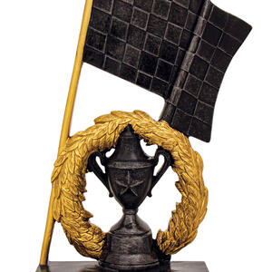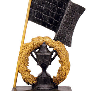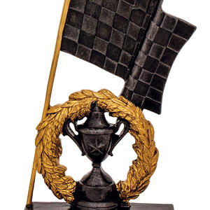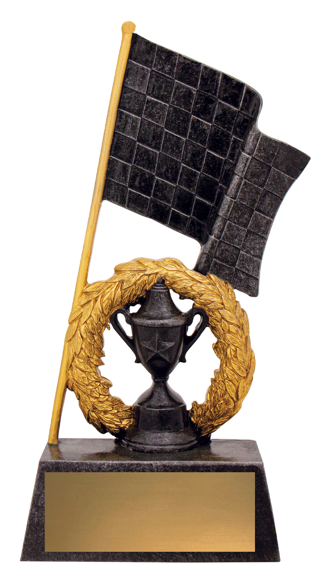 Celebrate motorsport achievement with a striking motorsport trophy designed for impact. This elegant award showcases a gold and black finish, featuring a classic trophy cup crowned with a laurel wreath and complemented by a prominent chequered flag detail. Crafted from durable resin, it offers a memorable symbol of victory for racing champions and standout performers.