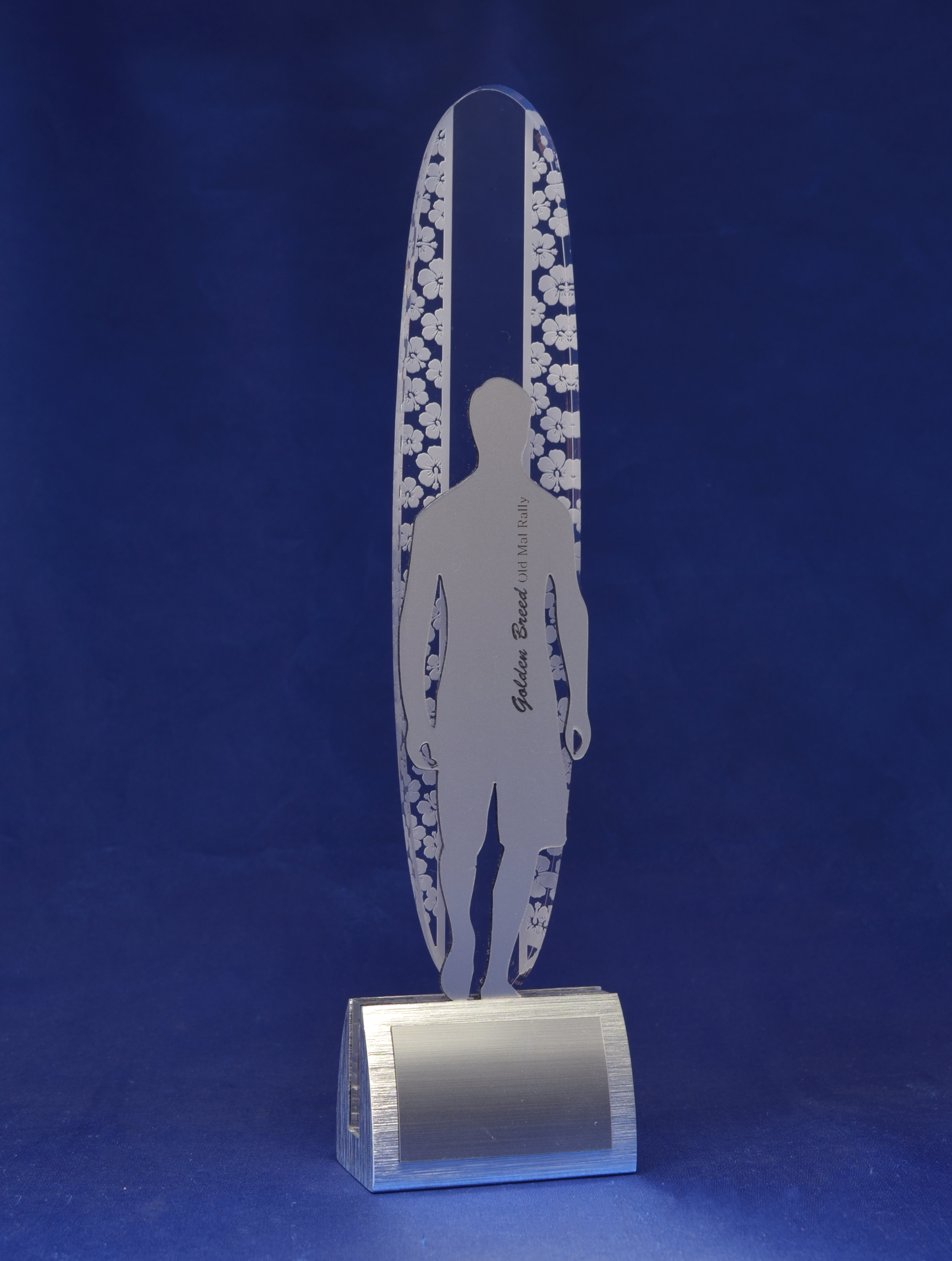 Gloss Silver on Acrylic Surfing Long Board Trophy