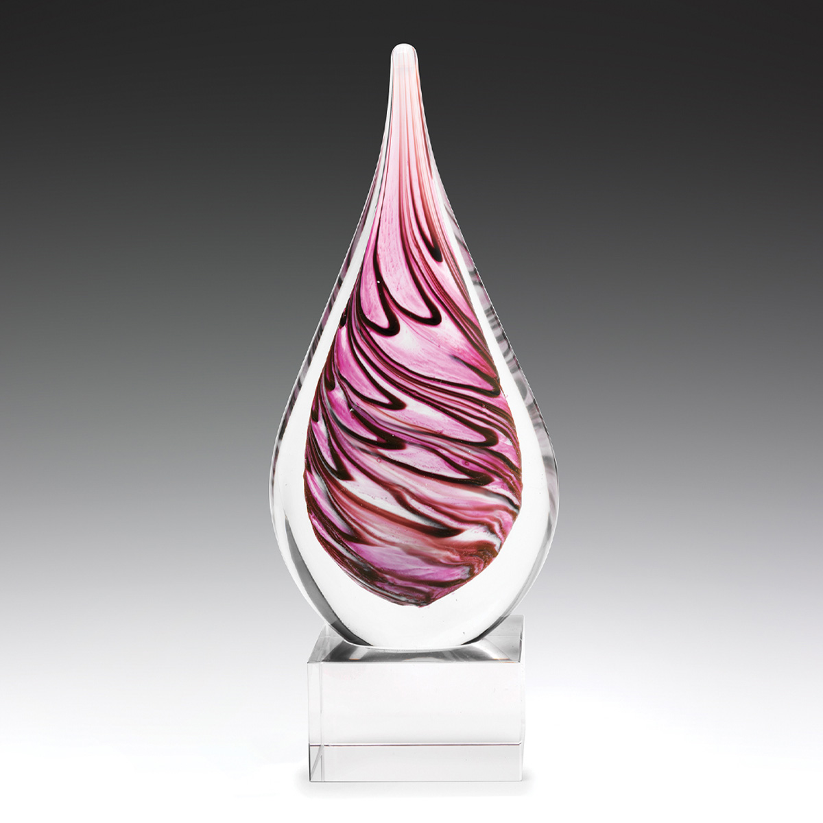 Glass trophies typically have a very slight green tinge, which can subtly affect the appearance of colour printing. In contrast, crystal trophies are completely clear.