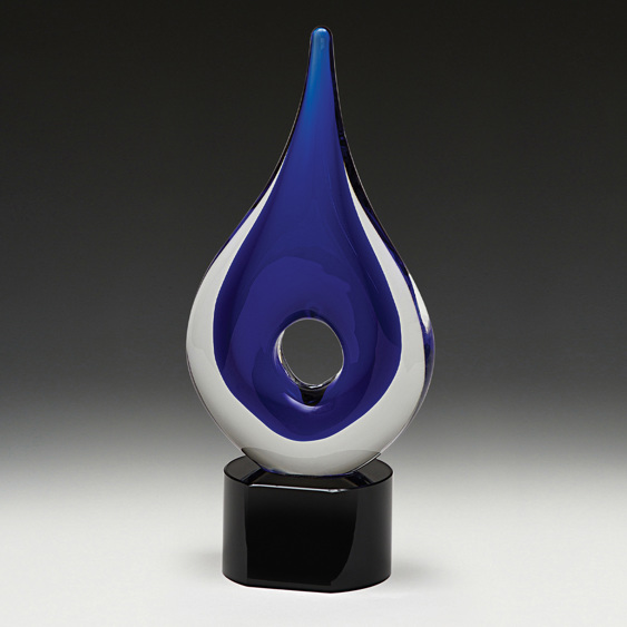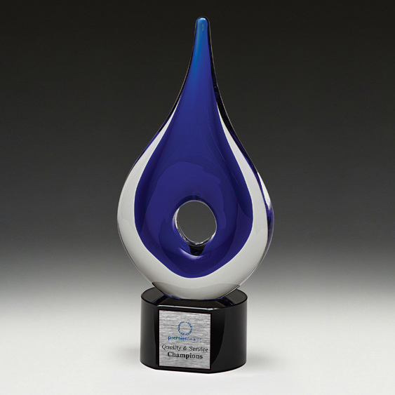 Art Glass Trophy - Dante Sculpture Light Blue/Blue with Printed Plate