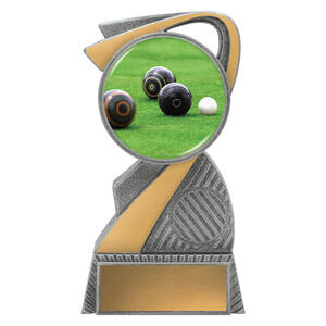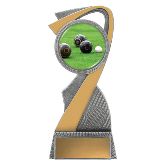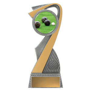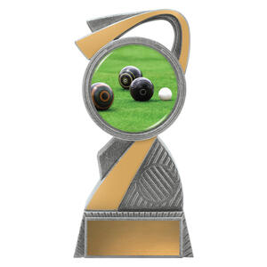 Modern geometric style lawn bowls trophy in antique silver and gold. Featuring a raised bowls emblem, this versatile design is ideal for all levels of competition, from social to championship events.