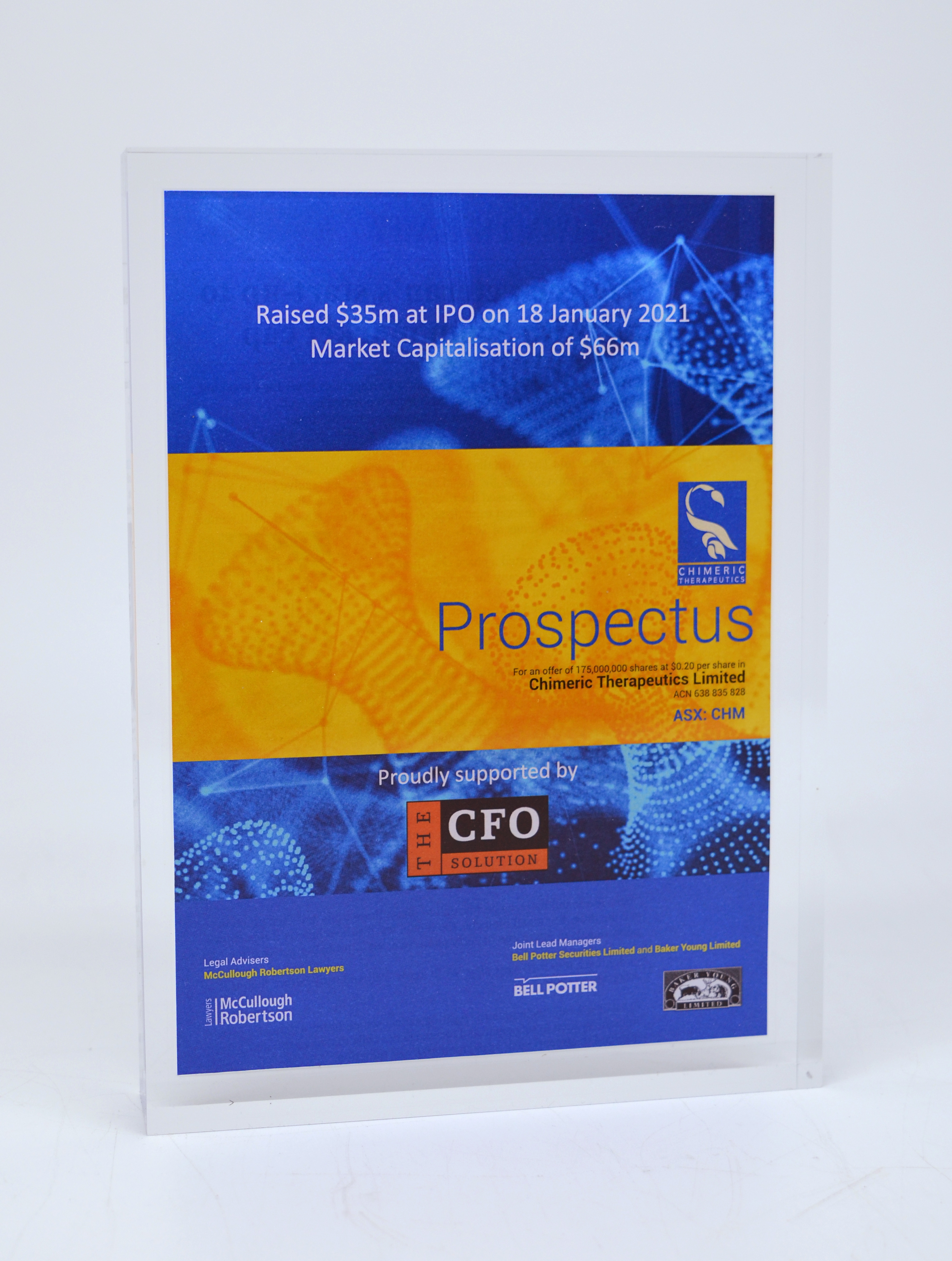 Acrylic resin embedments, often called acrylic embedments, Lucite embedments, or acrylic encapsulations, are premium display pieces created by embedding objects or printed materials into solid, crystal-clear acrylic. They provide a permanent, glass-like presentation that’s durable, UV-stable, and highly customisable in shape, size, and content. Embedments are used for financial tombstones, memorabilia encasements, product promotions, pharmaceutical and medical gifts, Point of sale and Awards.