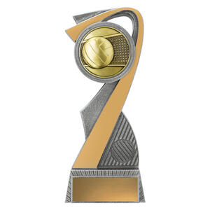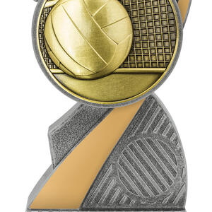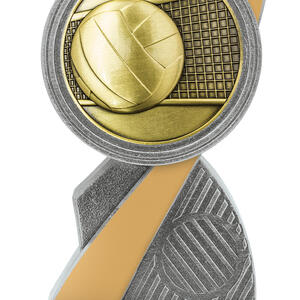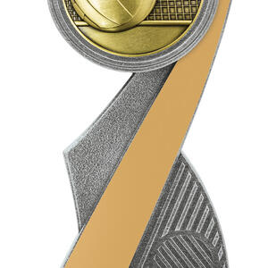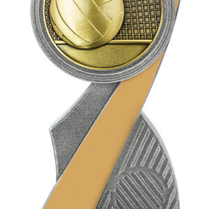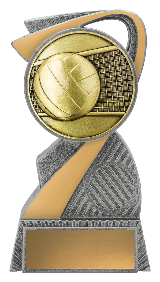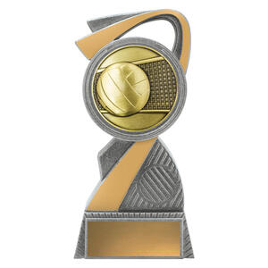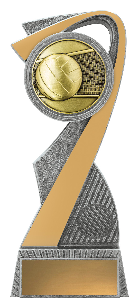 A bold volleyball trophy showcasing a stylised ball and net in gold and silver tones. Made from durable resin, this modern piece is perfect for schools, clubs, and representative awards. Complete with engraving plate and optional custom logo insert.