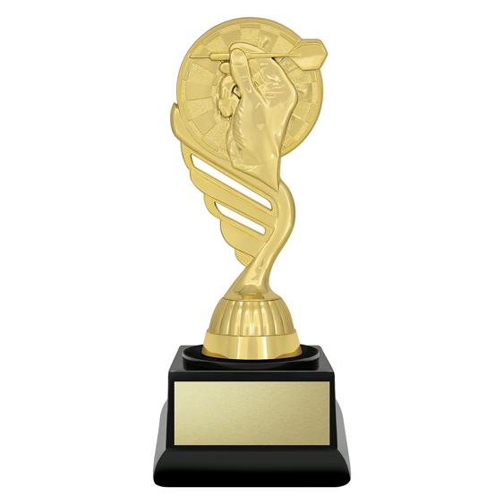 A distinctive bronze resin darts trophy with raised dartboard and star detailing. Perfect for recognising top players and celebrating darts achievements at club level.
