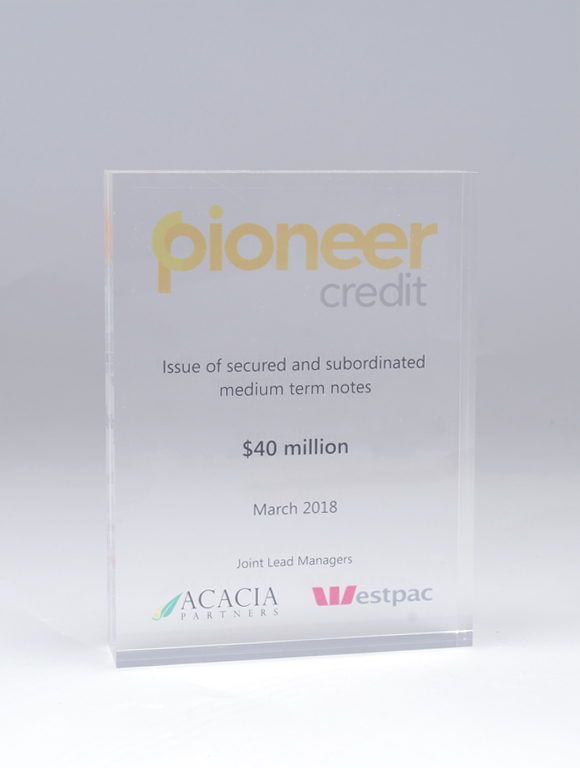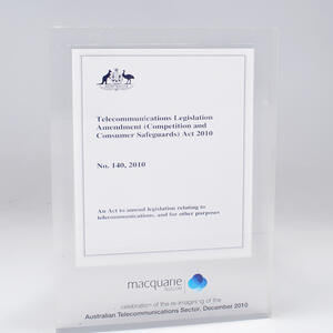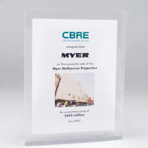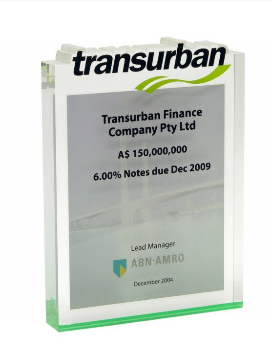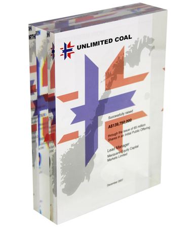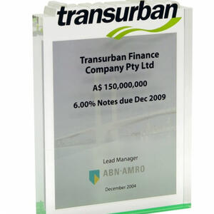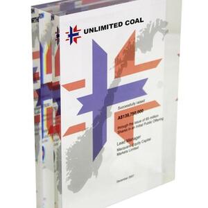 A long-standing favourite among the finance sector and corporate world, these mementos preserve the details of each achievement within clear, high-quality cast resin. Each piece can be customised in size, shape, and style to reflect the nature of the transaction and the identity of the organisations involved.