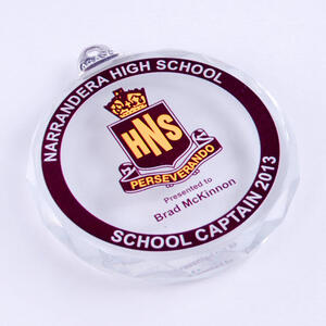 This colour-printed diamond-cut medallion offers a sophisticated alternative to traditional medals. Crafted from clear crystal with faceted edges, it provides a high-end presentation piece for schools, corporate events, or community awards.