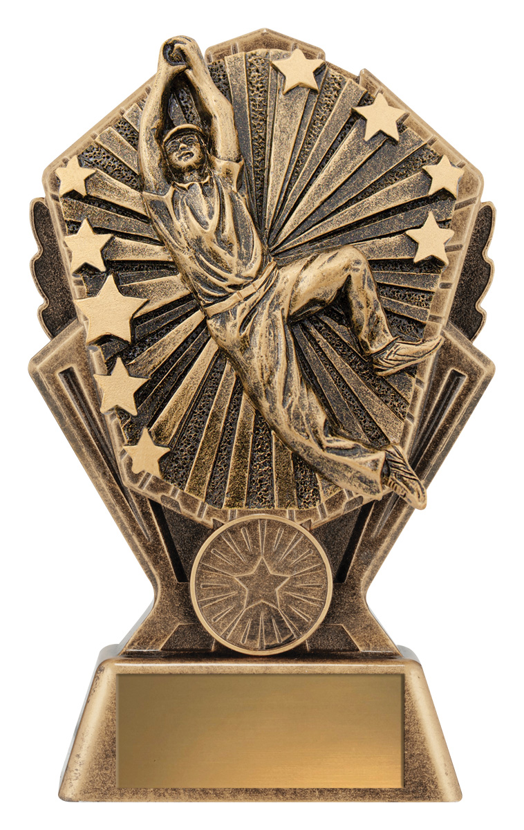 Showcasing a cricketer in the midst of a precision catch, this trophy is crafted with a striking starburst design and bold gold tones. The metallic finish and dynamic figure express achievement in the field, while the rectangular base ensures a professional presentation. A trusted choice among cricket trophies, it captures the spirit of success and excellence.