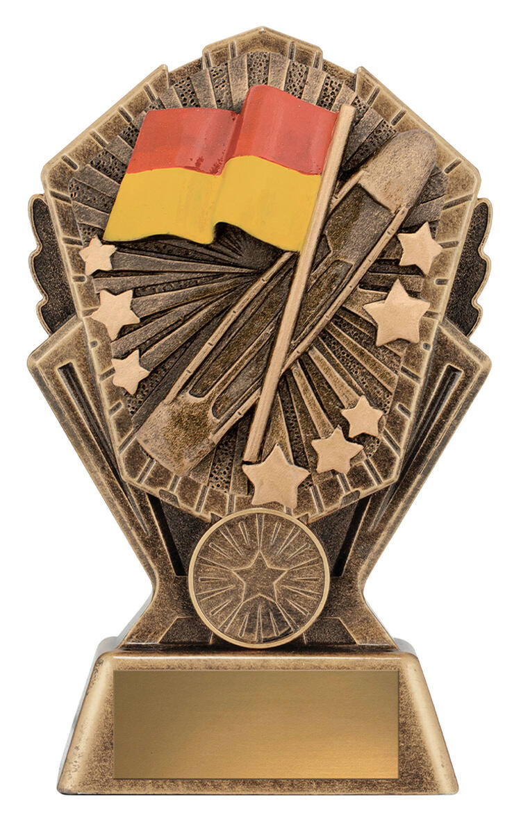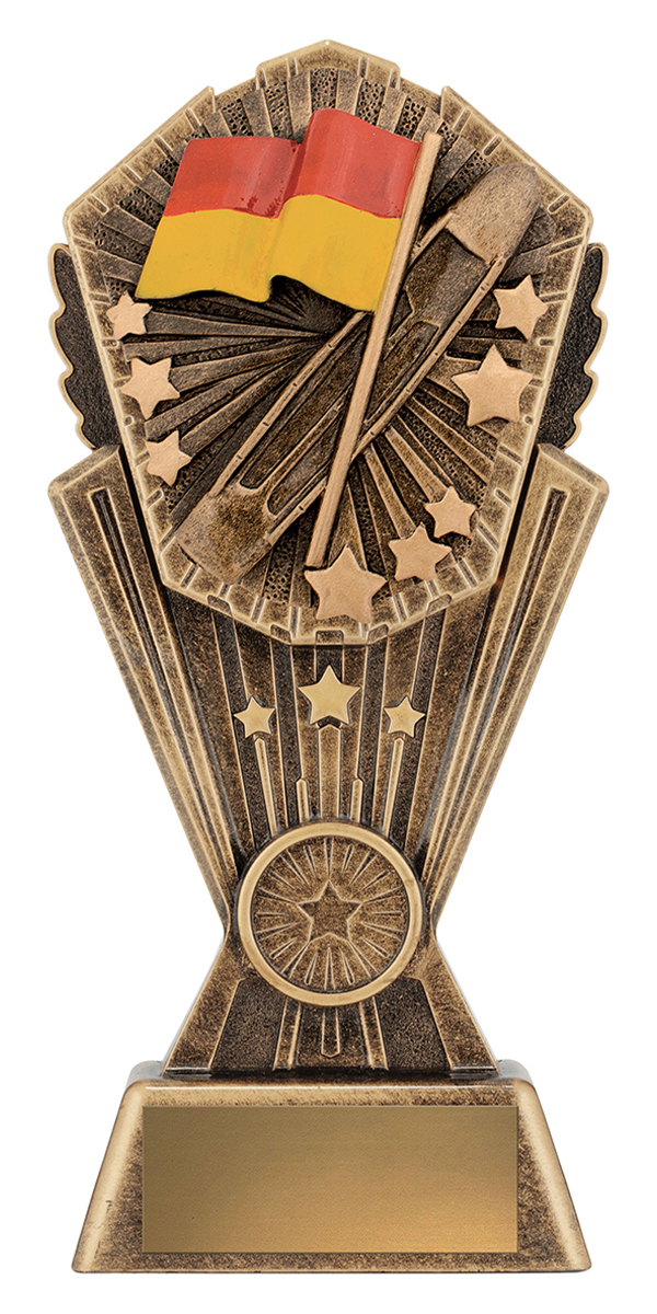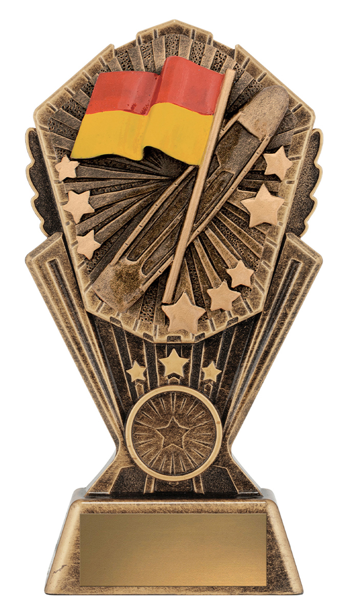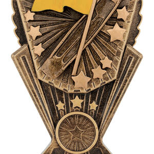Celebrate achievement and dedication with this elegant surf lifesaving awards trophy, crafted in vibrant gold, red, and yellow tones. The distinctive rectangular base supports a decorative top featuring a flag and striking star motifs, embodying both recognition and aspiration. Its quality metallic finish and provision for personalisation make it a memorable choice for honouring outstanding contribution to lifesaving.