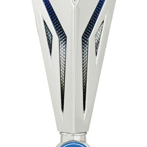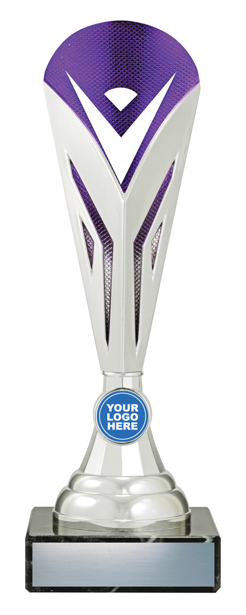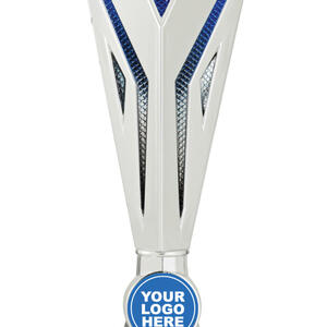 This budget trophy cup is crafted with a dynamic mix of silver, blue, and black, making it a standout choice for general sports recognition. Designed with a distinctive triangular top and a sturdy rectangular marble base, it balances visual impact and durability. Featuring a customisable logo area, this award offers a professional platform for celebrating achievement.