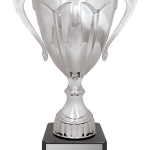 An elegant metal trophy cup crafted for outstanding achievement, this award unites timeless style with a contemporary finish. The reflective silver body, complemented by graceful handles and a sleek black base, delivers a memorable presentation, making it a trusted choice for recognising excellence across general sports events.