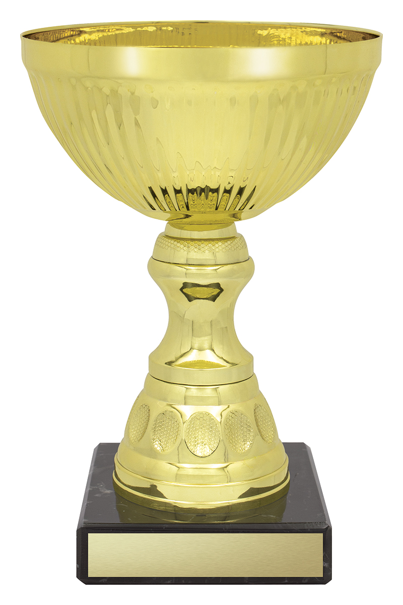This metal trophy cup offers a striking blend of gold and black, presented with a bowl shaped form and a marble base. Crafted from durable metal, plastic and marble, it features a textured design that adds visual interest, while the polished finish creates an elegant, professional appearance. An excellent choice for recognising achievement in any setting, this award stands as a symbol of lasting recognition.