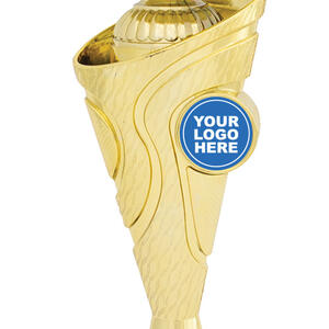 This budget trophy cup offers a refined blend of gold and black, making it a versatile choice for general sports recognition. Crafted from a combination of metal, plastic, and marble, it delivers durability and a professional finish. The trophy features a prominent cup design, a customisable logo area for distinct team or club branding, and a sturdy base suitable for engraving.