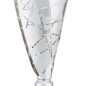 A striking example of contemporary recognition, this silver trophy cup balances modern aesthetics with timeless appeal. The silver metal conical upper section is accented by refined cut out patterns, resting securely on a black rectangular base. Crafted from a premium blend of metal and plastic, it offers a durable and elegant solution for any general award presentation.