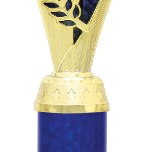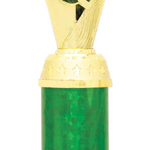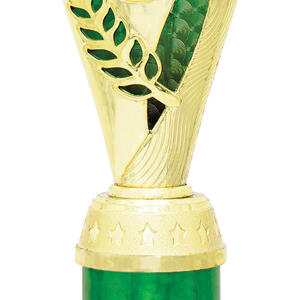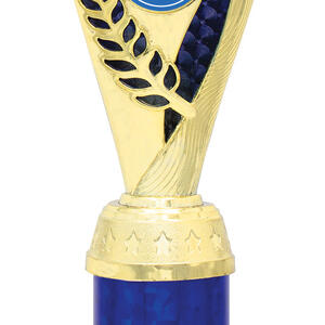 This plastic trophy cup blends a gold finish with vibrant green, red, or blue accents, offering a versatile choice for a wide variety of achievements. Its flared top and cylindrical base create a distinctive silhouette, enhanced by an elegant laurel motif. Featuring a 25mm centre for a custom logo, this award is designed for memorable and professional recognition.