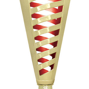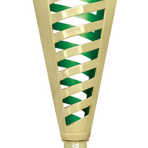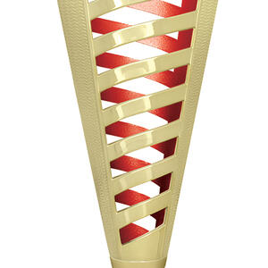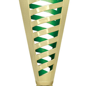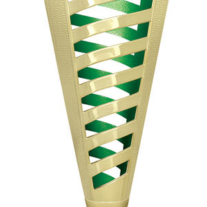 Celebrate achievement with a contemporary plastic trophy cup featuring a refined gold finish and striking spiral design. Accented with your choice of black, green, or red, this cup combines plastic and marble for a balanced, elegant presentation. The customisable centre area and sturdy base make it an adaptable option for recognising performance in any general sports setting.