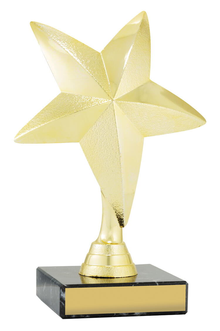 This dance trophy combines elegance and strength, featuring a gold star rising from a striking black rectangular base. The sophisticated colour palette and iconic star shape make it a memorable choice for celebrating achievement in dance.