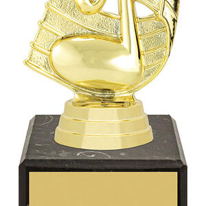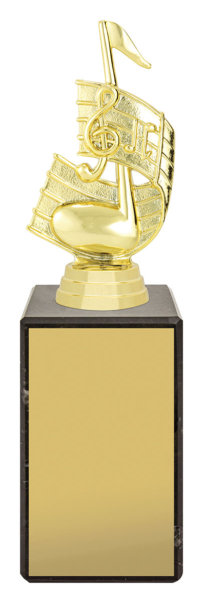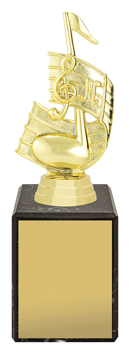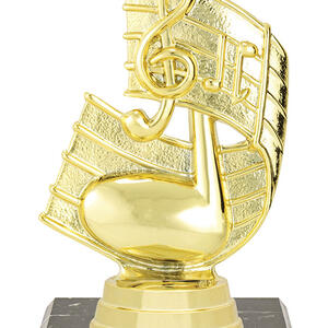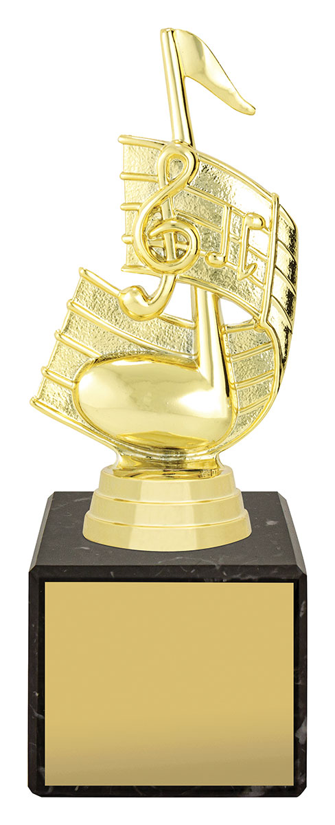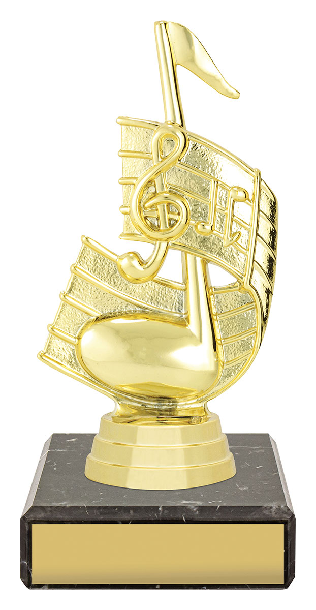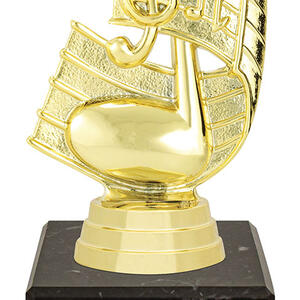 Celebrate musical achievement with this distinguished music trophy, featuring a striking treble clef and musical note design. Crafted from quality plastoc and set on a polished black marble base, it combines durability with a refined aesthetic, Making it a trusted choice for music events and recognition.