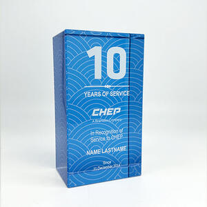 This crystal award combines clarity and sophistication, offering a standout option among corporate trophies. Precision digital print on both the front and back surfaces enhances visual depth and allows for exclusive customisation. Presented in a gift box, this piece is crafted for professionals seeking a memorable way to recognise achievement or commemorate corporate milestones.