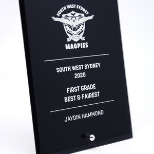 This distinguished glass plaque combines substantial glass and sleek metal to create a refined, contemporary award. Its rectangular black design is both elegant and durable, offering a premium canvas for recognising achievement. Designed to accommodate engraved text and logos, it is an excellent choice for professional, personalised recognition that leaves a lasting impression.