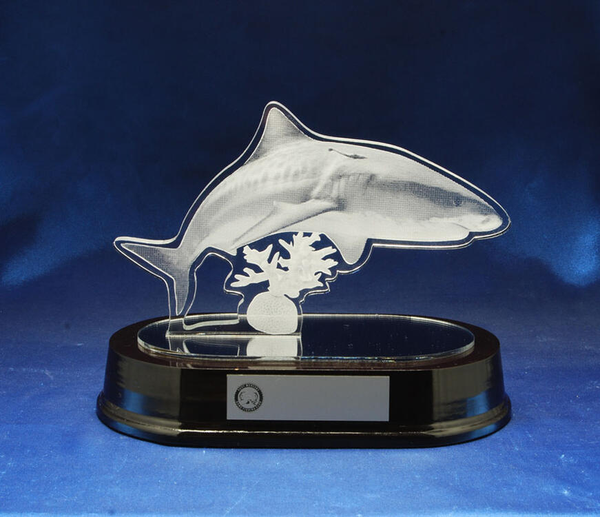 This game fishing trophy is crafted with striking coral and shark elements, capturing the excitement and prestige of marine sports. It offers an impressive presence for tournament recognition or club awards. Its detailed design makes it a memorable choice for celebrating achievement in competitive game fishing.